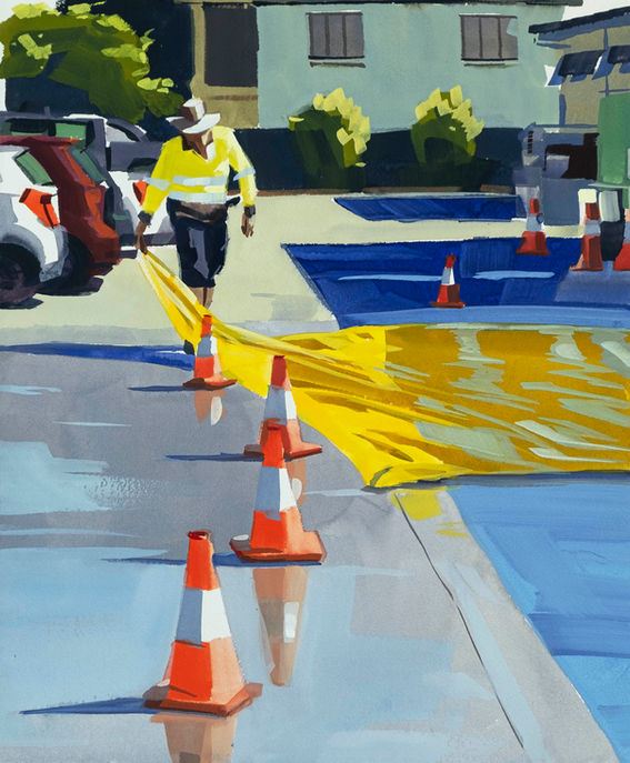 Man with canvas, 2020, gouache on paper, 25 x 30 cm