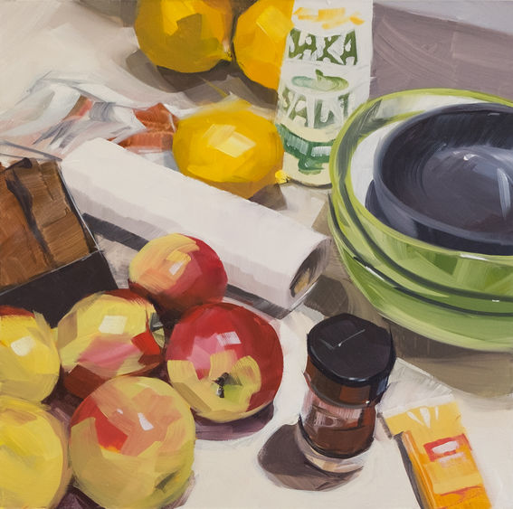 Apples and salt, 2015, oil on board, 30 x 30 cm